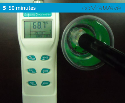 The results of dissolved oxygen tests on normal tap water show that the coMra Wave technology increases the availability of dissolved oxygen in the water over a period of 60 minutes, with the largest change in the first 15 minutes of exposure.
