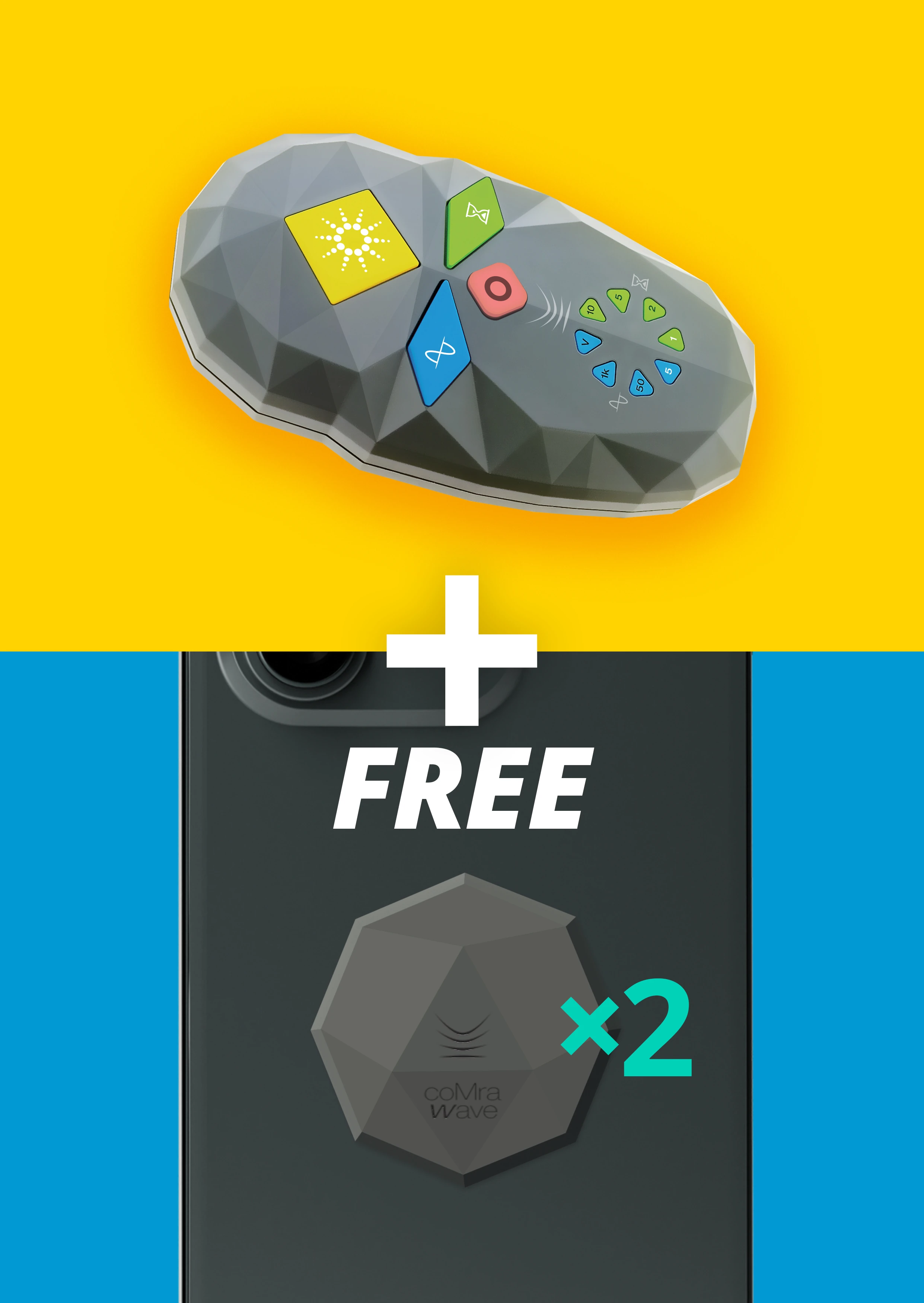 Embrace the future of coMra therapy with the enhanced second generation coMra Palm, offering effortless usability and improved healing technology. To further amplify your health, this bundle includes two free coMra Wave Cells, shielding you and your loved one from digital radiation while revitalizing your body at the cellular level. A smarter way to invest in your long-term wellness.