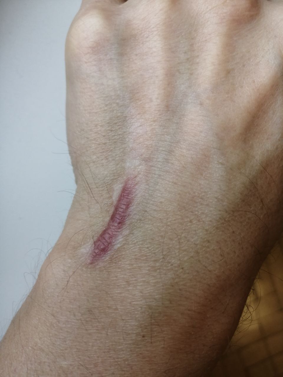 A couple of years ago I fell from an electric scooter, which left a scar on my arm. It's still reddish in color, though gradually fading.